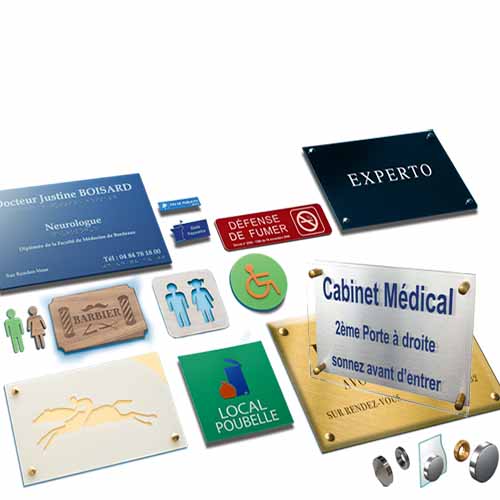 Plaque de porte Plexiglas, Plaques Plexiglas Icone, Plaque de porte Aluminium Galbé, Plaque de porte Aluminium plate, Plaque de porte Bois, Plaque de porte impression Vinyle Adhésif, Chiffres et lettres découpés, Accroches-portes.